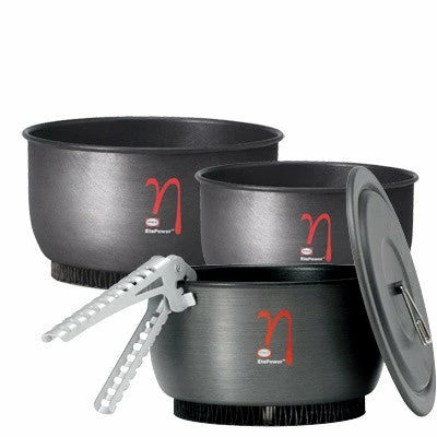 Primus Eta pots are made from hard anodized aluminium with a completely new ceramic non-stick coating on the inside. The heat-resistant silicone-coated handles are integrated with the pots. The lid of the pots is made from transparent BPA-free plastic with grip-friendly silicone; it can also be used as a colander. All the pots can be packed inside each other – to minimise your pack volume, you can pack the pots with their lids turned upside down. The pots are available in sizes 1.0, 1.8 and 3.0 litres and can be used with every Primus stove on the market.