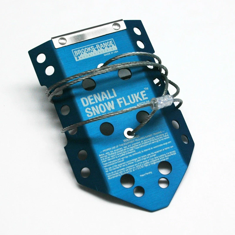 People kept asking us to make a perfect snow fluke and so we did making it the premier snow tool. The Brooks-Range Snow Flute has a peerless strength-to-weight ratio, as well as unmatched practical design. The Brooks-Range Snow Flute doubles as an emergency digging tool or tent anchor making it the perfectshelter accessory. Available in three sizes. The Brooks-Range version is the best compromise between holding power and size. It is color anodized to both protect the snow fluke and make it easier to find in the snow. The Brooks-Range Snow Fluke has a stainless steel striker plate to take hammering abuse of an ice axeand a 3.26 mm galvanized 7 by 19 wrap steel wire cable. It is imperative that the Brooks-Range Snow Fluke is placed correctly to ensure maximum holding power. A well placed snow fluke will dig itself deeper under load, while a poorly placed device will pull out very easily. Small 7.6oz (215.5g) 6.5″ x 3.5″ (16.5 x 8.9cm) Medium 9.2oz (260.8g) 7.5 x 4.25″ (19 x 10.8cm) Large 10.5oz (297.7g) 8.5″ x 5″ (21.6 x 12.7cm) Cable length is 43″ for all sizes