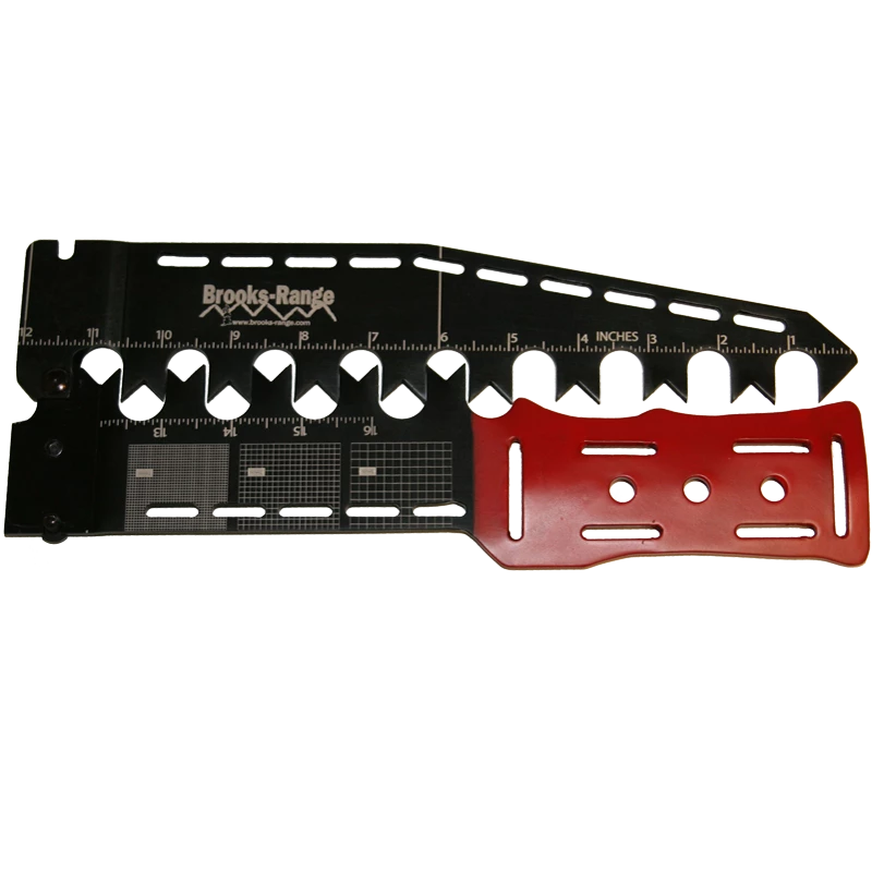 The strong aluminum blade is anodized flat black with 1mm, 2mm and 3mm crystal grids laser etched on the surface plus imperial and metric rulers on either side. With a pair of our polyurethane ski straps you can attach this blade to our shovel shafts or ski poles to extend its reach. The handle is insulated with a rubber coating.