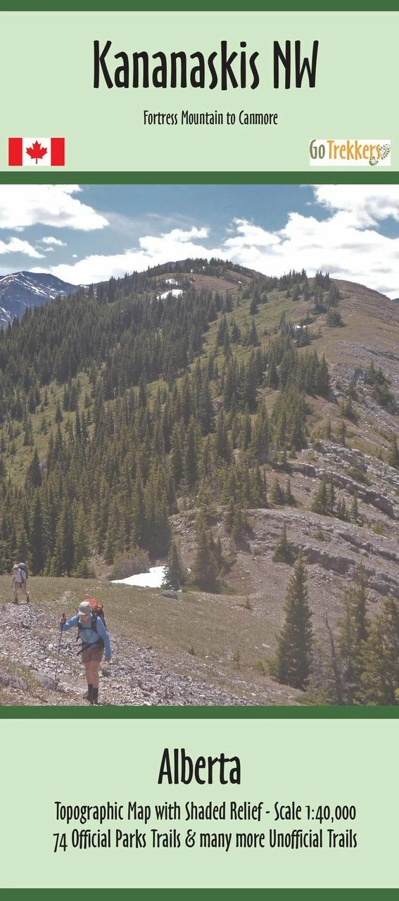 New map by GoTrekkers of Kananaskis NW, AB at 1:40,000. This map is about 41″ x 39″ single sided showing 71 Offical Park trails in the Kananaskis NW area