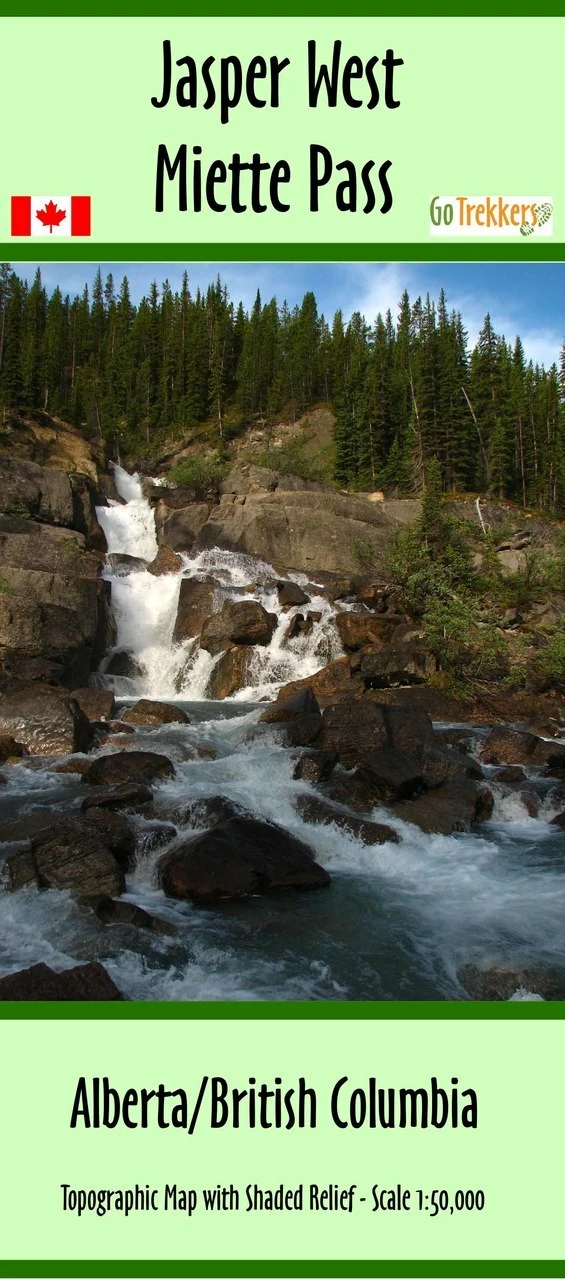 New map by GoTrekkers of Miette Pass Trek at 1:50,000 This map is about 37″ x 27″ single sided showing the trail from Yellowhead Hwy to the Miette Pass & back to the Yellowhead hwy.
