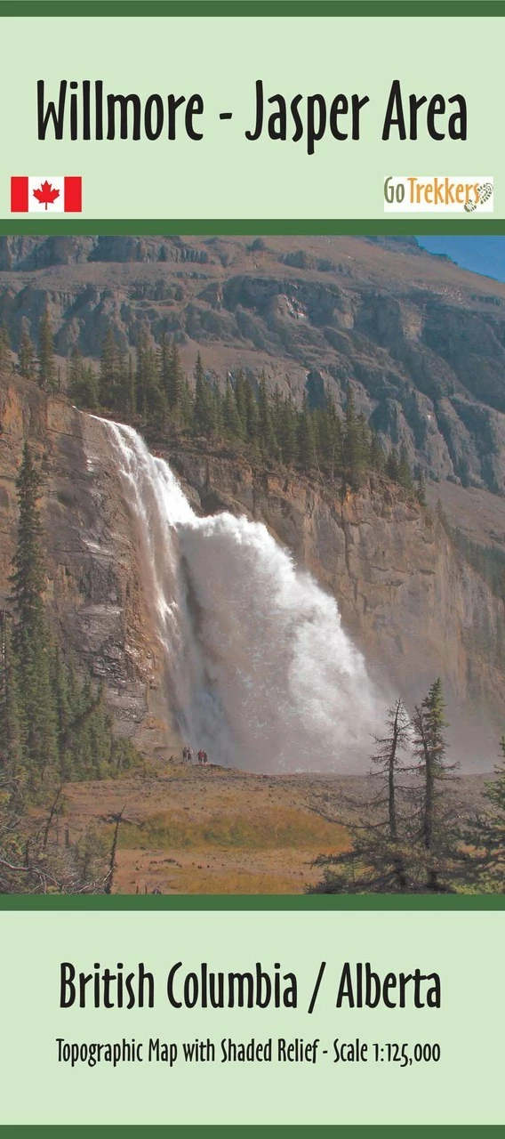 New map(2012) by GoTrekkers covering from Willmore Wilderness Provincial Park to Jasper Townsite at 1:1250,000 adjacent to thw Willmore map. This map is about 44″ x 26″ single sided showing Parks trails. Map has 40m contours with shaded relief