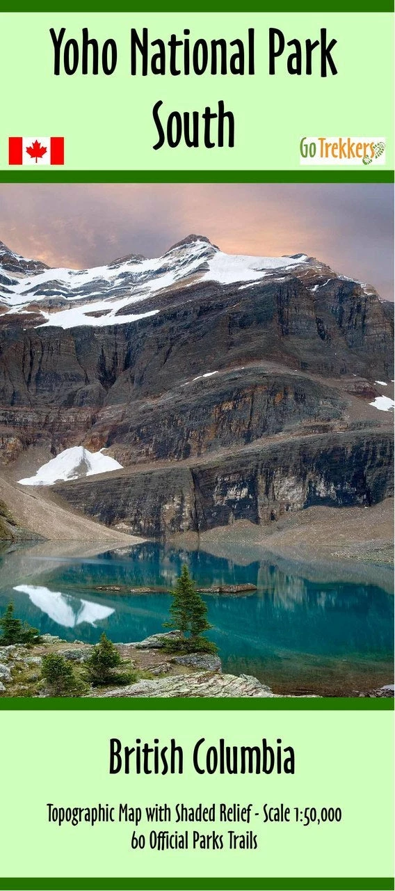 Topographic Map with shading of the Yoho National park South at 1:50,000. Size 34″x32″ with 20m contours & over 60 official Park Hiking Trails