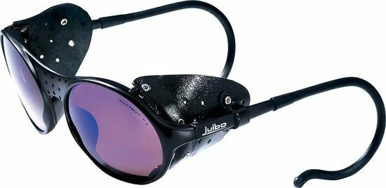 Glacier sunglasses with removable side shields. Category 3+ lenses, 8% – 18% transmission of visible light. Curled temples. Comes with case and neck cord.
