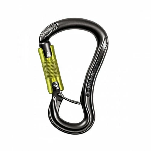 Ergonomically shaped HMS carabiner with an independent internal wire gate for safe belaying and rappelling, twist-lock